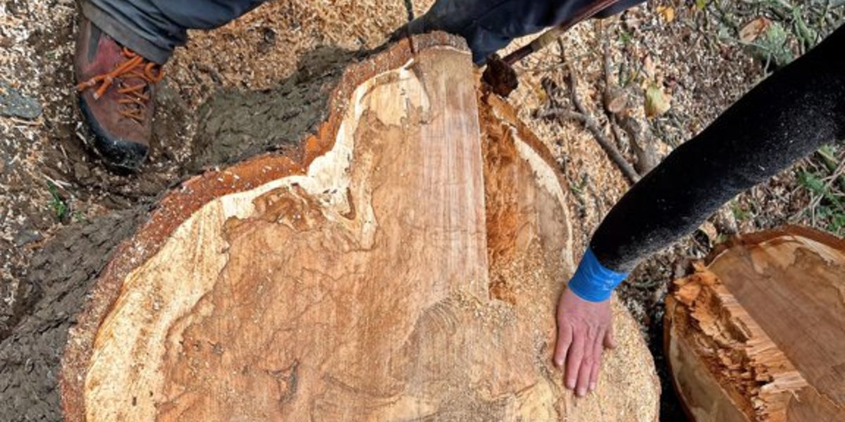 Gut 100 Jahre hat es den Baum gekostet, seine endgültige Höhe zu erreichen, etwa zweieinhalb Stunden haben Barazutti und sein Team gebraucht, ihn zu fällen. „Jetzt fräsen wir noch den Stumpen aus, und dann ist es erledigt.“