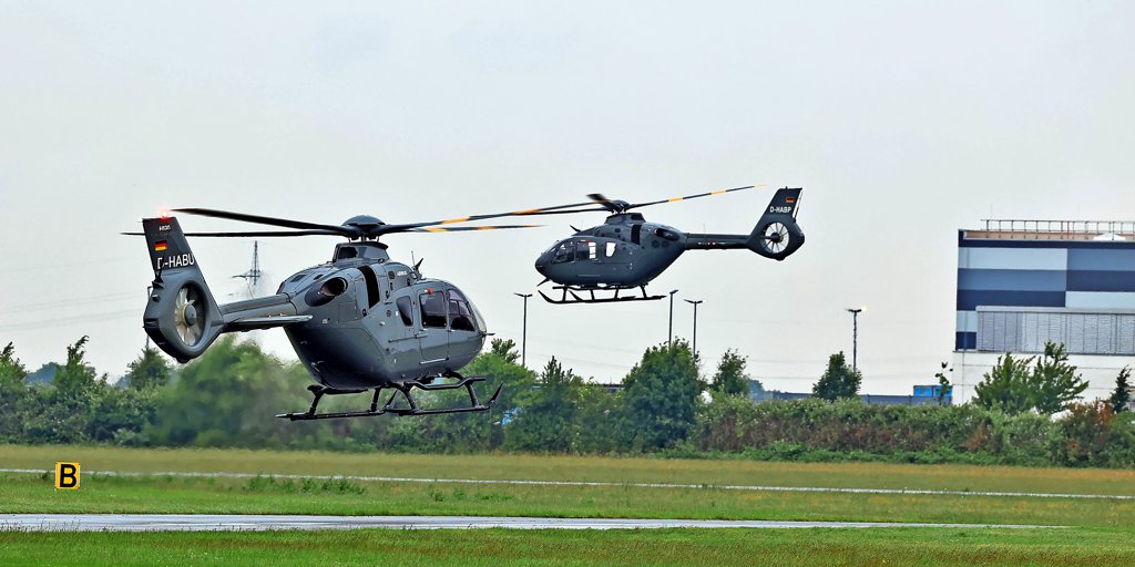 Eith gehört zu den etwa 70 Lehrgangsteilnehmenden, die am Dienstagnachmittag bei starkem Regen zu den Eurocoptern auf dem Flugplatz laufen. Zwölf Maschinen stehen in einer Reihe am Rande des Flugfelds. Um 15.29 Uhr bewegt sich der erste Rotor der Airbus-Hubschrauber. Rote und gelbe Positionslichter blinken.