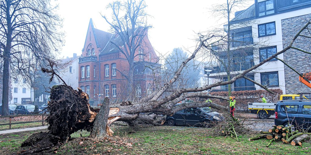 Rund 100 Jahre alter Baum in der Hildesheimer Sedanstraße kippt um und beschädigt mehrere Autos