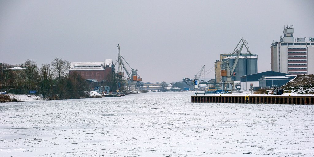 Im Hildesheimer Hafen herrscht wegen der Eisschicht Stillstand. Foto: Chris Gossmann