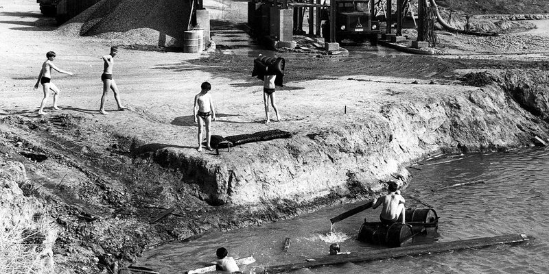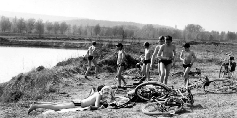 Während des Kiesabbaus war Baden im See lebensgefährlich und streng verboten. Die sieben Jugendlichen auf unserem Foto ließen sich davon nicht abhalten, schließlich war das Frühjahr 1968 mit Temperaturen bis zu 35 Grad außergewöhnlich heiß. Am ersten Schultag nach den dreiwöchigen Osterferien gab es sogar hitzefrei, also „nischt wie raus nach Hohnsensee“. Aufnahme vom 23. April 1968