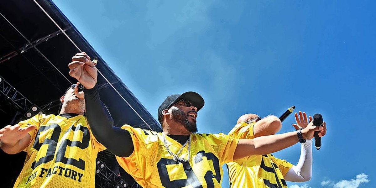 Und das zündet beim Publikum, das noch lange scharenweise anrückt – zu Fuß. Manche mit Strohhüten, oft farbenfroh, aber auch schlicht schwarz – so richtig finden sich die Stilelemente der 1990er im Publikum nicht wieder: transparente Stoffe, bunte Strumpfhosen, Leggins oder Radlerhosen oder bei den Männern die Baggy Jeans, übergroße tiefhängende Hosen – aber die Stimmung passt, und die Refrains können so gut wie alle mitsingen.