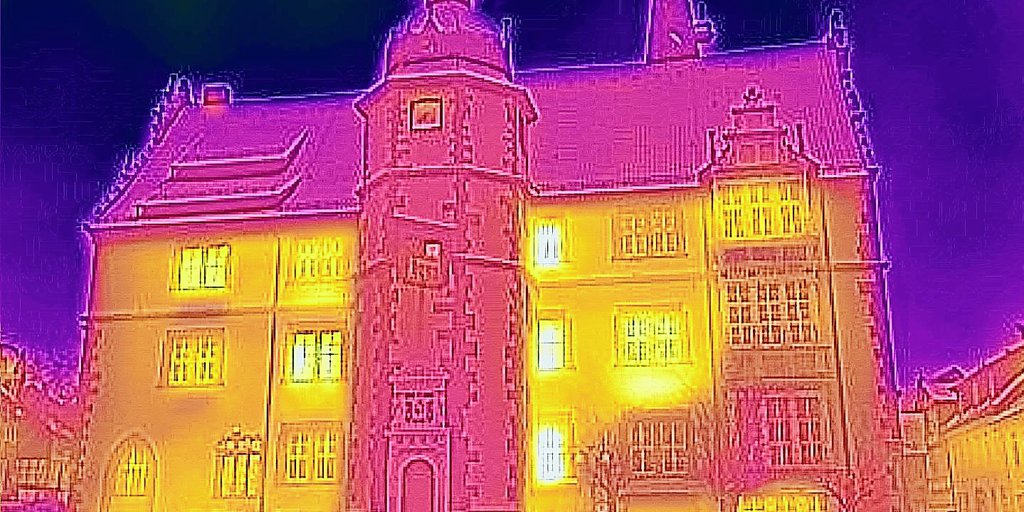 Die Fassadenbereiche des Alfelder Rathauses zeigen in der Aufnahme unterschiedliche Wärmeflächen. Die Zusammenhänge zu interpretieren, gelingt aber nur einem Experten. Foto: Stadtverwaltung Alfeld