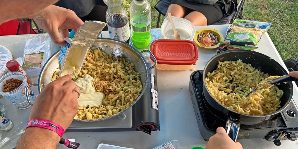 Und zum Schluss muss auch noch abgewaschen werden. Festivalleben, wie es sich gehört.