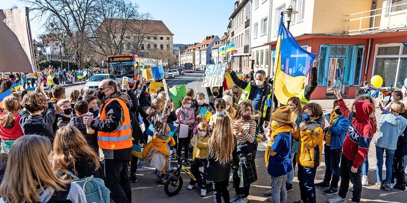 Zurück zu den Wurzeln, könnte man diese Aufnahme kommentieren. Nach dem russischen Einmarsch in die Ukraine organisierten die Hildesheimer Schülervertretungen wie bei Kennedys Ermordung spontan ein „Zeichen, das alle sehen können“. An der Menschenkette beteiligten sich über 3500 Schülerinnen und Schüler. Dass sich die Geschichte permanent zu wiederholen scheint, könnte den Chronisten resignieren lassen. Nur gut, dass sich die Menschen der Region ihr eher hitziges Naturell offensichtlich doch erhalten haben und jede Gelegenheit nutzen, öffentlich für Demokratie und Zivilcourage einzutreten. Aufnahme vom 11. März 2022, Archiv Verlag Gebrüder Gerstenberg.