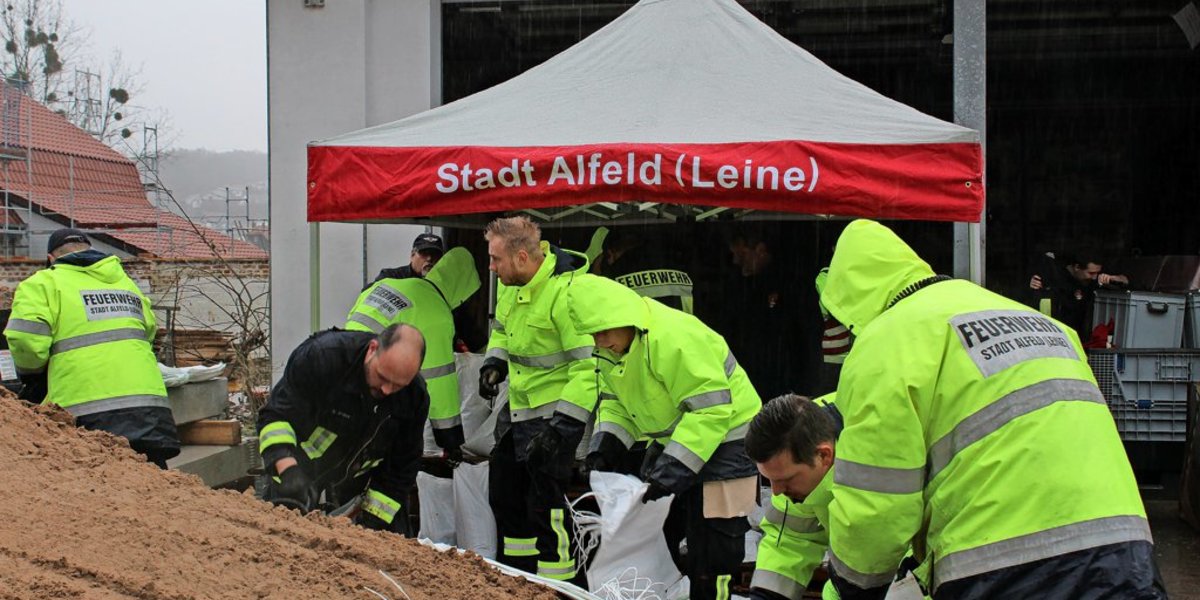 In Alfeld ist vorerst noch die Leinebrücke gesperrt. Die Feuerwehr nutzt die Bahnhofstraße als Zu- und Abfahrt zur alten Post, dort werden in einer allen Reparaturhalle Sandsäcke abgefüllt. Pausenlos fahren dort Lastwagen ein, die Sand aus den Fredener Sandkuhlen anliefern. Außerdem: Die Verbindungsstraße zwischen den beiden Ortsteilen Föhrste und Röllinghausen ist bereits seit Sonntag gesperrt, weil ein Teil der Strecke überflutet ist. Alle Feuerwehren der Stadt Alfeld befinden sich im Einsatz.