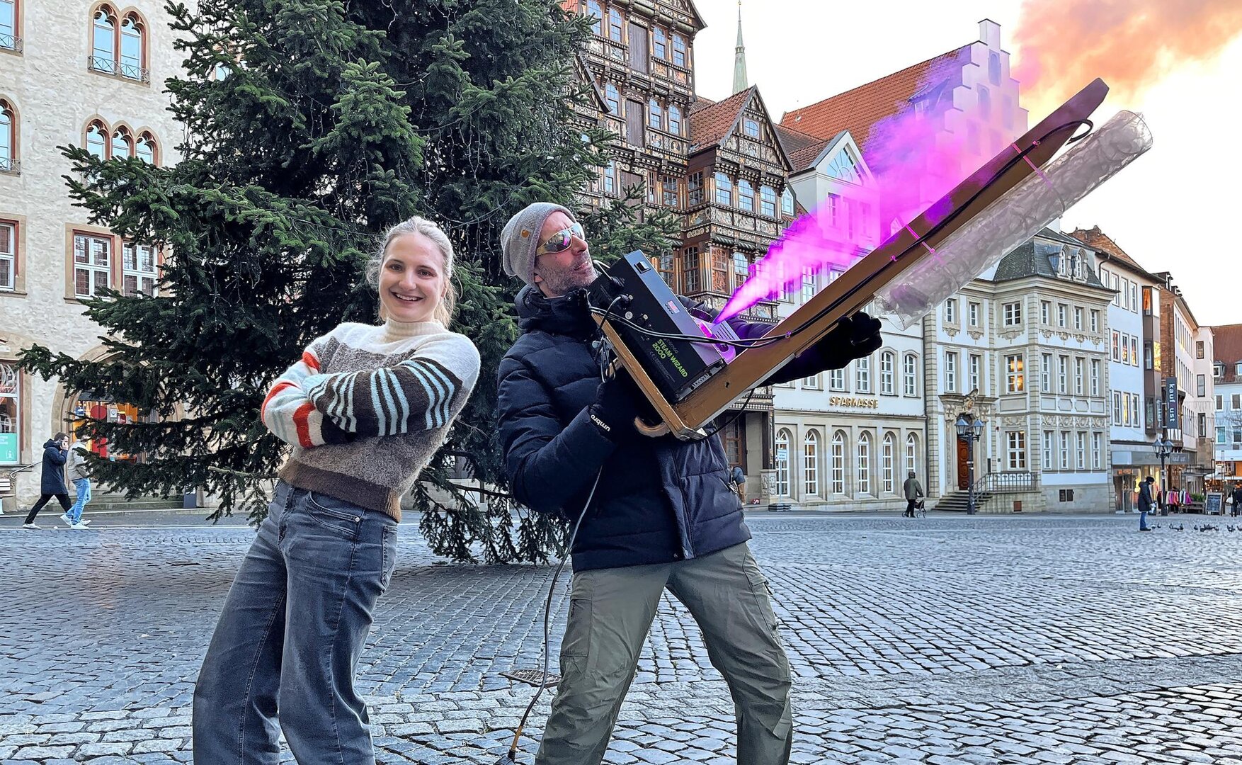 Auf dem Marktplatz wird das neue Jahr mit einem Lichtspiel begrüßt – ohne Knall und GestankLucy Schreiber und Lito Bürmann planen Projekt für Silvester am Rathaus – mit „Donauwalzer“Von Björn Stöckemann…Hildesheim