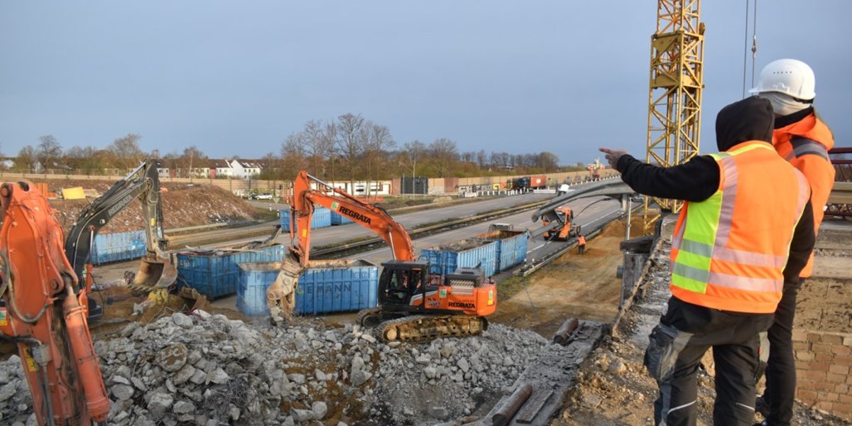 Eine Sprengung war bei dem Abriss übrigens keine Option. „Hier kommt man ja von der Fahrbahn aus prima mit Baggern an die Brücke ran“, erklärt der Ingenieur. „Das Anbringen von Sprengladungen hätte viel länger gedauert.“ Das sei ein Verfahren, das eher bei höheren Brücken zum Einsatz kommt.