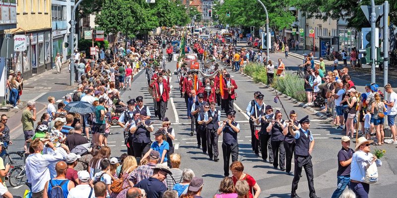Hildesheim - Sonnenschein, mehr als 2000 Teilnehmerinnen und Teilnehmer und eine Menge zu hören und sehen: Der Schützenumzug zieht am Sonntag durch Hildesheim – und so sieht das aus.