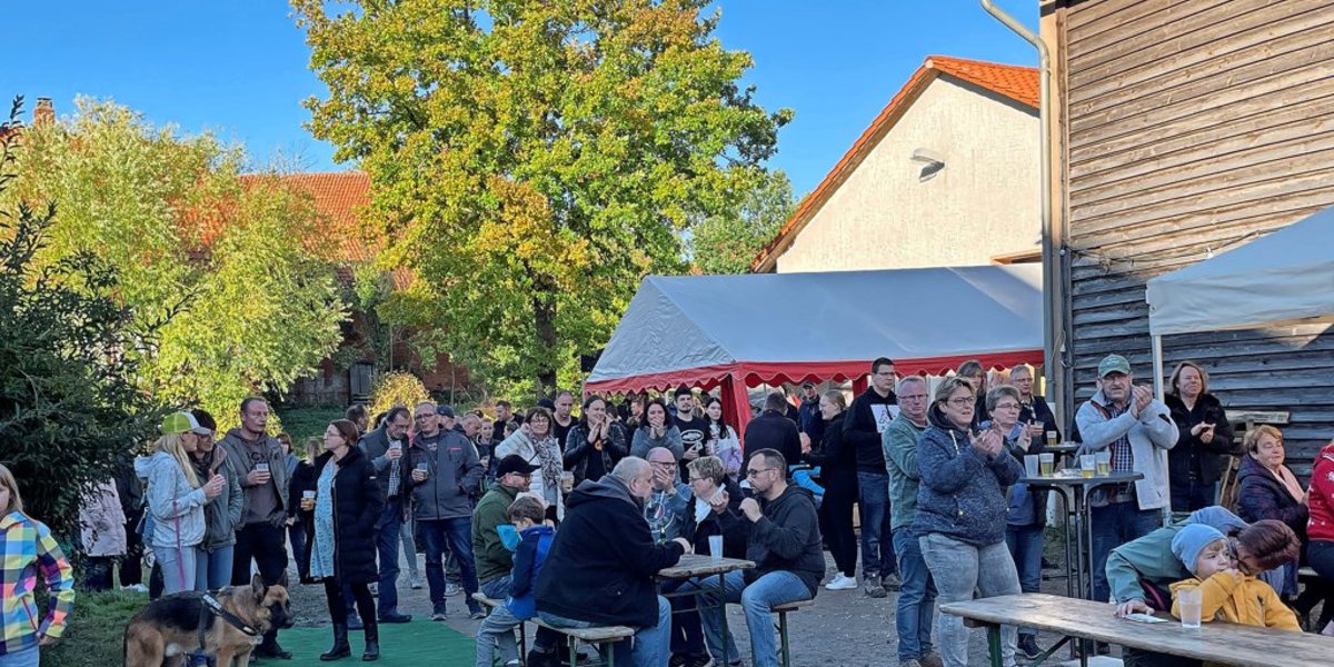 „Wir haben das ganze Dorf und die Helfer eingeladen“, sagt Maik Zastrow, Hauptorganisator der Feier Anfang September und Ortsbrandmeister im Despetal. Damit auch alle etwas davon haben, wechseln sich am Sonnabend die Männer und Frauen am Bratwurststand vor dem alten Feuerwehrhaus ab. Dass Remo noch einmal in das Dorf bei Gronau kommen würde, hängten die Barfelder nicht an die große Glocke, um unter sich zu feiern. Und das taten sie. Immerhin stehen der Dorfgemeinschaft nun 5000 Euro Preisgeld zur Verfügung. „Was wir damit machen, wissen wir noch nicht“, sagt Zastrow. Im Ort werden Zettel verteilt, auf die die Bewohner ihre Vorschläge schreiben können. Danach wird entschieden.