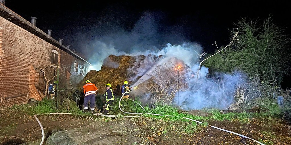 Fünf Meter hoher Misthaufen auf Gut Harbarnsen fängt Feuer: 90 Einsatzkräfte verhindern Großbrand
