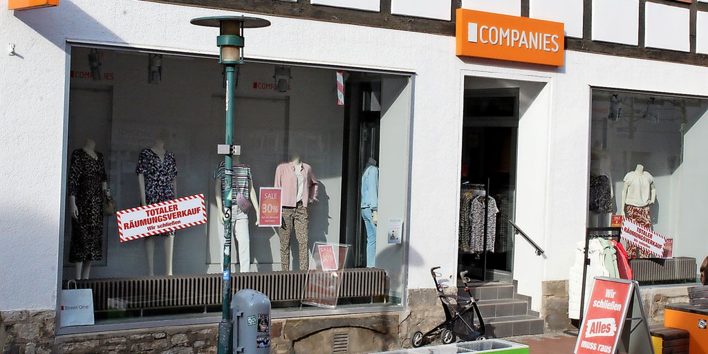Sarstedt - „Wir schließen. Alles muss raus“. Der Aufsteller vor dem Modegeschäft Companies kündigt…