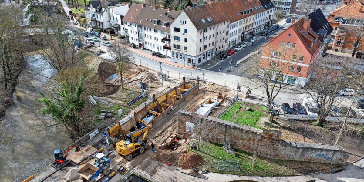 Danach soll der Betondeckel eine etwas größere Fläche als die ursprünglich geplanten 330 Quadratmeter abdecken: Hinzu kommt nun noch der Bereich, der den äußersten erhaltenen Brückenbogen auf der Südseite überspannt. Mitarbeiter des Institutes für Bauforschung der Technischen Universität Braunschweig rücken in den nächsten Tagen an, um den Bogen zu vermessen, kündigt Baustellen-Chef Stefan Keck von dem Ingenieurbüro BN Umwelt GmbH an.