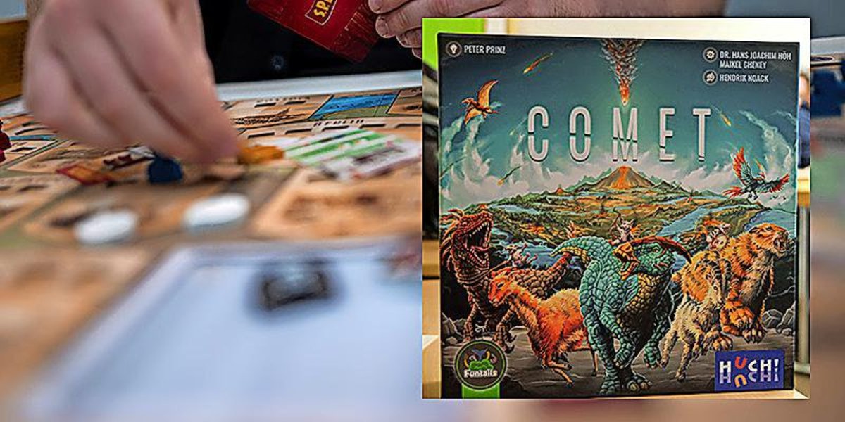 Ein aufwändiges Spielfeld, hochwertige Figuren: Comet ist ein Familienspiel, das von den Kindern bis zu Oma und Opa wohl alle begeistert. Es spielt in einer prähistorischen Welt. Ausgestorbene oder stark bedrohte Tierarten gilt es zu retten – rechtzeitig bis zum Einschlag des Kometen, der das Ende des Spiels markiert. Spannend: Die jeweils geretteten Tierarten oder Dinosaurier helfen dann bei den weiteren Rettungsaktionen. Swantje Schurig vom Verlag Funtails verspricht, dass die Grundregeln schnell erlernt sind. Die Spieler und Spielerinnen würden durch die Würfel, die über Stärken und Fähigkeiten entscheiden, durch die Geschichte geleitet. Der Verlag empfiehlt ein Mindestalter von 12 Jahren. „Aber auch jüngere Kinder mit Brettspielerfahrung haben mit Comet bereits ihren Spaß“, so Schurig. Die Spieldauer wird mit 45 bis 75 Minuten angegeben.