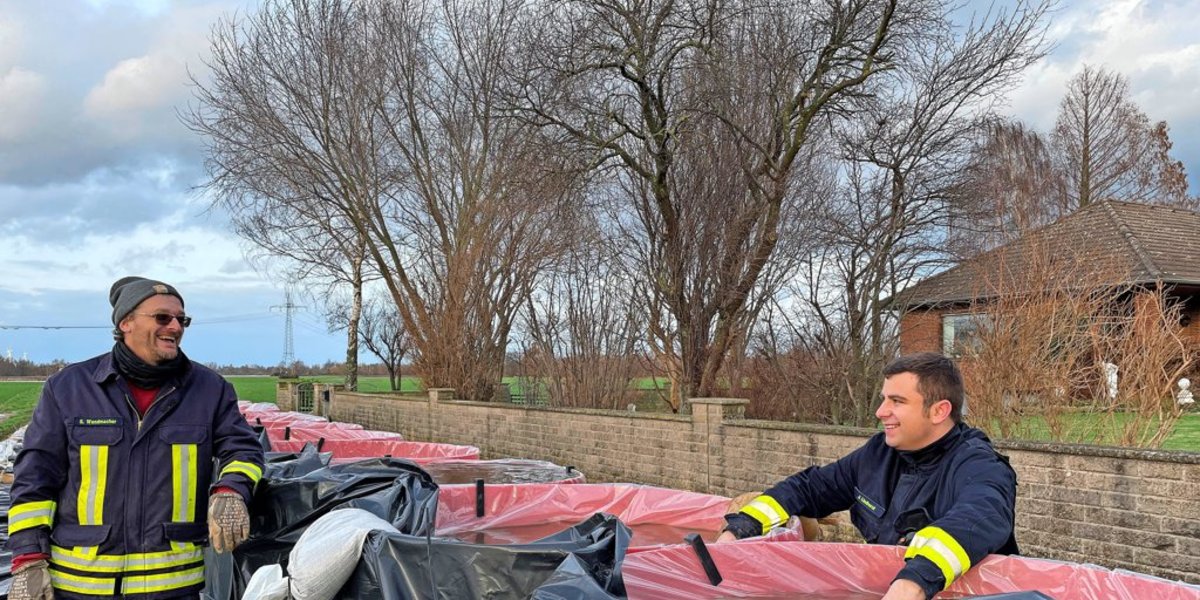„Da wo sie gebraucht werden sind sie da – dafür sind wir dankbar“, sagt Beneke-Böllersen über die Helfer und Helferinnen. Sie steht, immer noch ganz ungläubig, vor der überschwemmten Fläche. In ihrem Keller hat sie erste Vorkehrungen getroffen, damit das Wasser nicht in den Fahrstuhl gelangen kann. „Gestern sah es hier noch ganz anders aus“, sagt sie mit Blick aufs Feld.