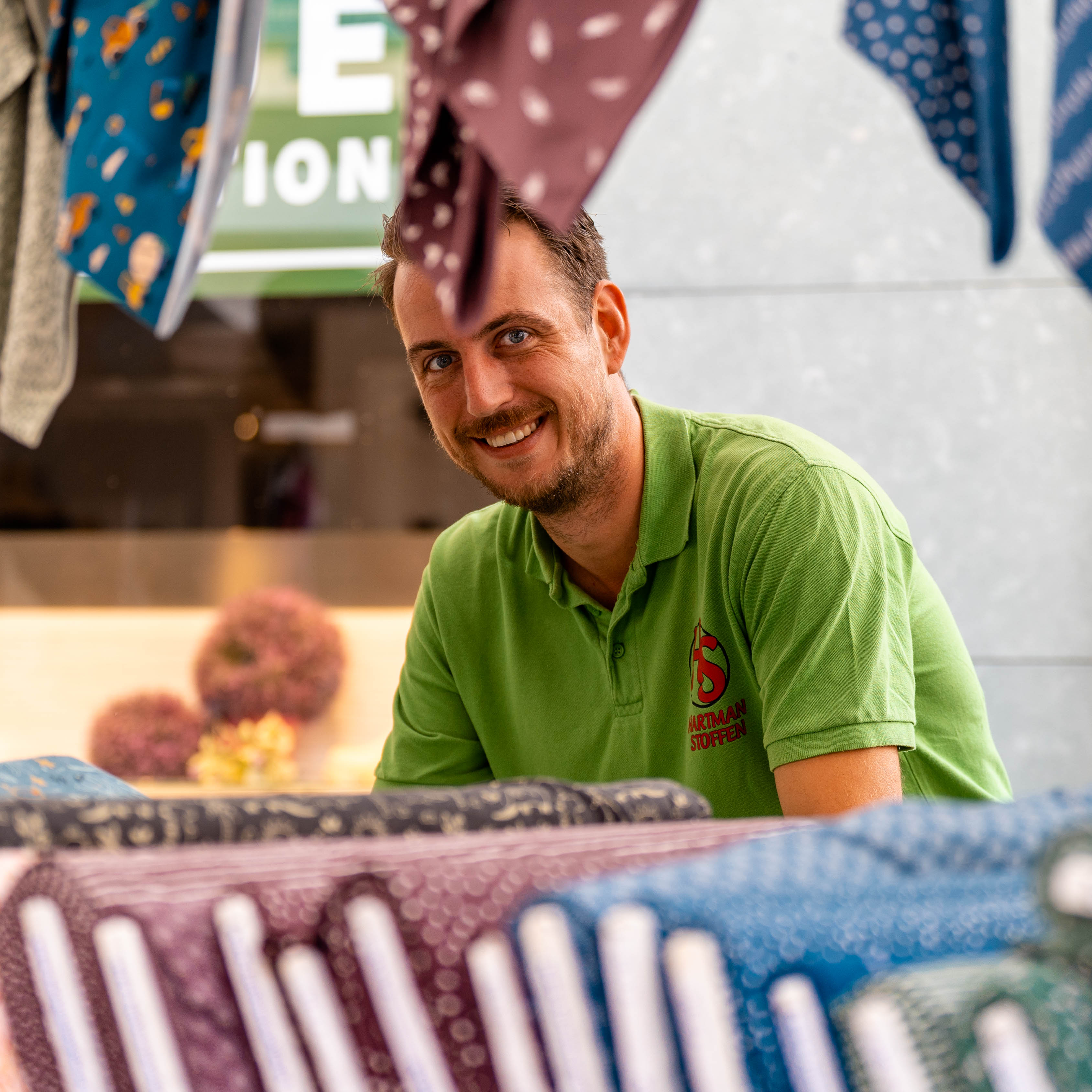 Zahlreiche liebevoll dekorierte Stände präsentieren Stoffe in unzähligen Farben, Qualitäten und Designs – von Baumwolle über Jersey bis hin zu hochwertigen Materialien für Mode- und Wohnprojekte. Auch Schnittmuster, Bänder, Knöpfe, Garne und weitere Kurzwaren sind im Angebot.