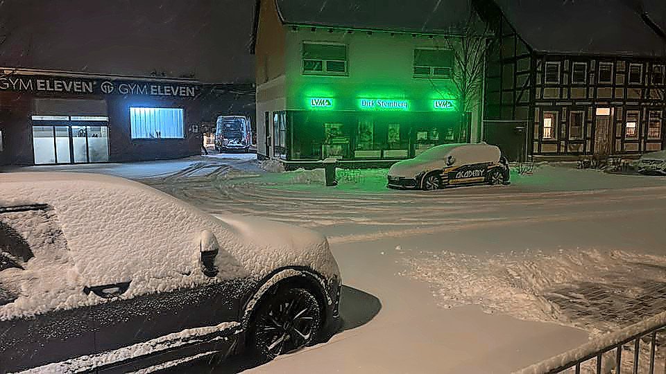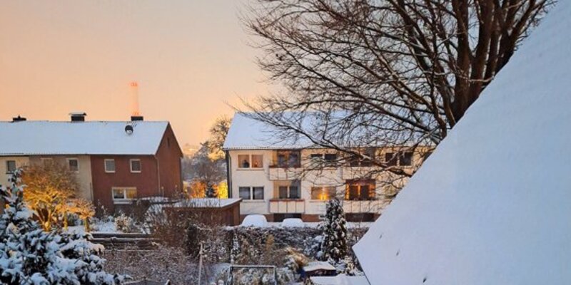 Alles voller Schnee in Sarstedt um 10 Uhr, zeigt uns Nina Kegenbein.