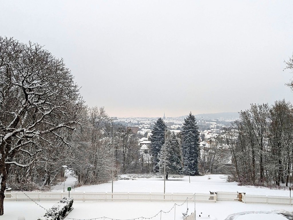 Das Team vom Parkhotel Berghölzchen schickt uns den Ausblick aus dem Hotel. Schön weiß!