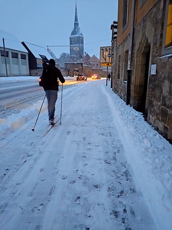 Ganz schön dunkel war es noch, als Silvana Ranno diese Aufnahme im Alten Dorf gemacht hat - im Schnee waren aber schon einige Fußstapfen zu sehen.