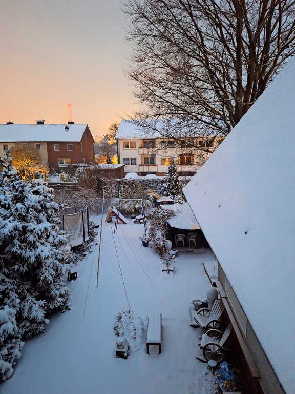 Heute Morgen um 6 Uhr in Bavenstedt: Der Ausblick aus dem Büro in den Hof von Lars Wedekind.