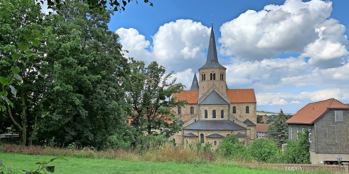 Am Kehrwiederwall in der Hildesheimer Neustadt gibt es jede Menge Rasenflächen, auf denen die Picknickdecke ausgerollt werden kann. Zum Beispiel die mit Blick auf die Pfarrkirche Basilika St. Godehard, wie auf dem Foto.