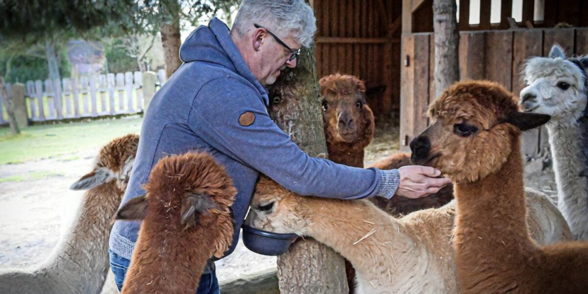 Die Schraders haben einen Sohn und eine Tochter, beide sind erwachsen. „Unsere Tochter sagt immer, sie hat acht Brüder, einen gewöhnlichen und sieben mit Fell.“ Sagt die Mutter und lacht. Wenn die Eltern mal in den Urlaub wollen, hüten die Kinder die Tiere. In fremde Hände würden sie sie nie geben. „Das muss man sich vorher überlegen“, sagt Iris Schrader. „Alpakas werden gut 20 Jahre alt, so lange muss man für sie dasein.“