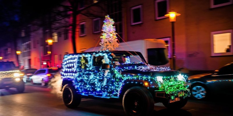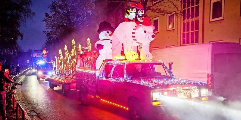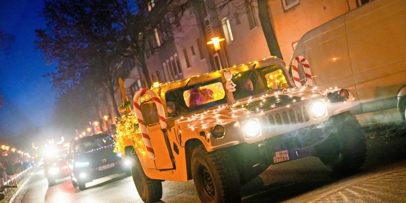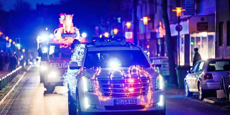 Hildesheim - Mehr als 120 weihnachtlich illuminierte Fahrzeuge, darunter viele Polizei- und andere Einsatzfahrzeuge, die einst in Amerika unterwegs waren, sind am Sonntag bei der dritten Lichterfahrt durch Hildesheim unterwegs. Die Bilder von Clemens Heidrich und Valentin Brendler.
