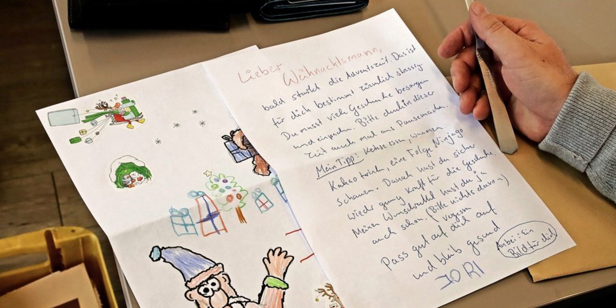 Aber ist Briefeschreiben überhaupt noch zeitgemäß? Definitiv, sagt Osterwald. Die Zahlen geben ihm recht: Die Anzahl der Wunschzettel-Schreiberinnen und Schreiber habe in den vergangenen Jahren nicht abgenommen. „Wir laufen hier also quasi gegen den Trend.“ Und bei einem Blick auf die Briefe wird auch schnell klar, warum E-Mails eben nicht funktionieren: Denn wer glaubt, dass die Kinder „nur“ eine Liste mit ihren Wünschen schicken, irrt. Manche Briefe sind kleine Kunstwerke: Ein liebevoll gezeichnetes Bild vom Weihnachtsmann oder bunte Glitzer-Sticker finden sich auf vielen Zetteln, und natürlich die persönliche Unterschrift.