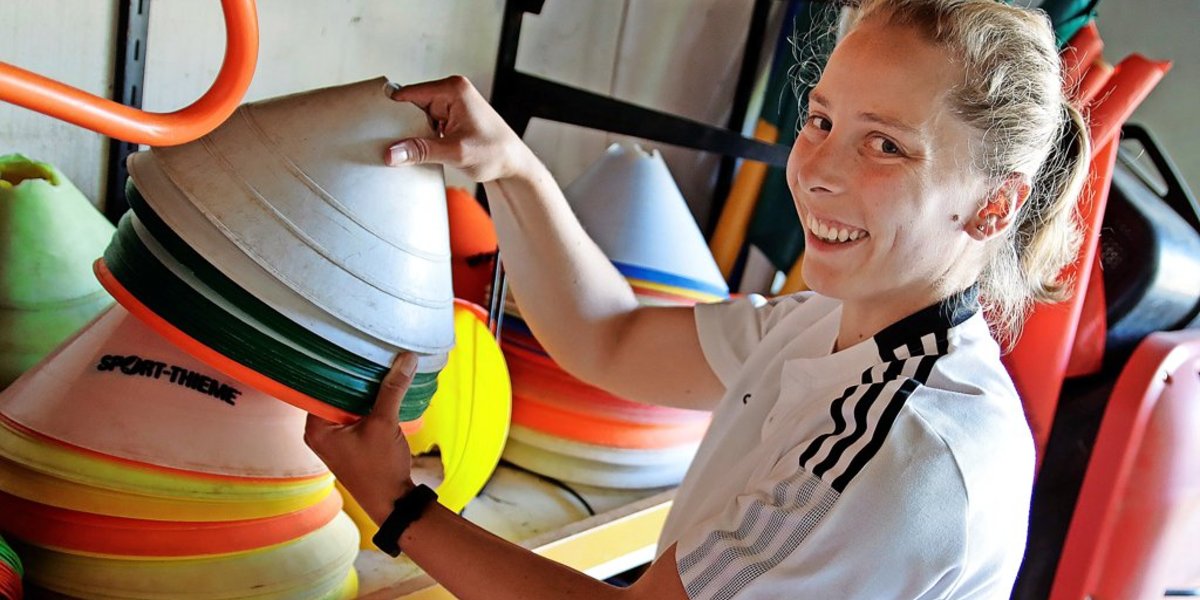 Sie schaut auf die Uhr. Gleich kommen die C-Juniorinnen zum Training. Anne Arzbach hat noch einiges vorzubereiten. Sie marschiert in die Geräte-Garage. Wie immer mit flottem Schritt.