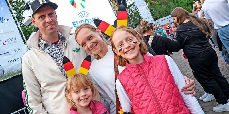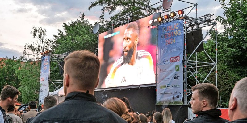 Hildesheim - Rund 2300 Hildesheimerinnen und Hildesheimer verfolgten das EM-Auftaktspiel der deutschen Mannschaft auf dem Parkplatz des Novotels bei der ersten großen EVI Fanmeile. HAZ-Fotograf Chris Gossmann mit den schönsten Bildern des Public Viewings am Freitagabend.