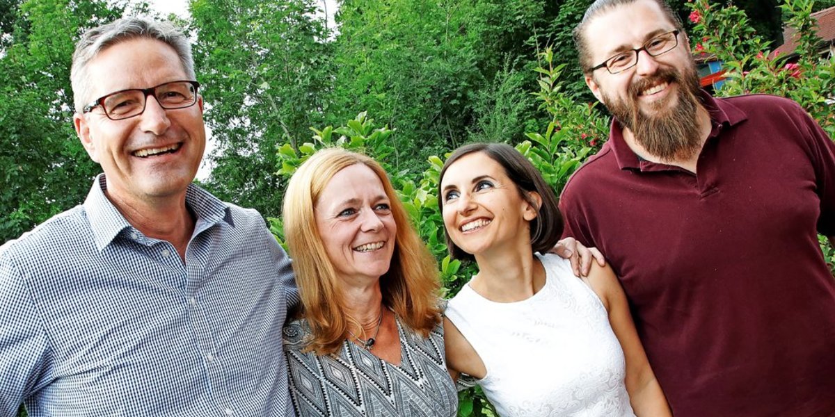 Die Ärztin Claudia Tuchscherer (Zweite von links) gewann den Wettstreit in einer Runde der TV-Show „Das perfekte Dinner“. Das Finale der fünf Folgen schaute sie zu Hause am Kranzweg mit einer anderen Teilnehmerin und zwei Teilnehmern der Episode.