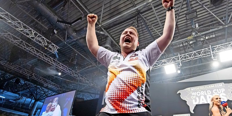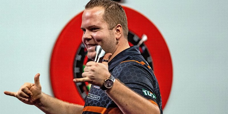 Dirk van Duijvenbod besucht am Wochenende Hildesheim, nachdem er der Stadt beim Players Championship Turnier im August noch fern blieb – allerdings aus gutem Grund. Seine Freundin war damals hochschwanger. Nun kommt der „Titan“ wieder nach Hildesheim – als frischgebackener Vater. Foto: Steven Paston/PA Wire/dpa