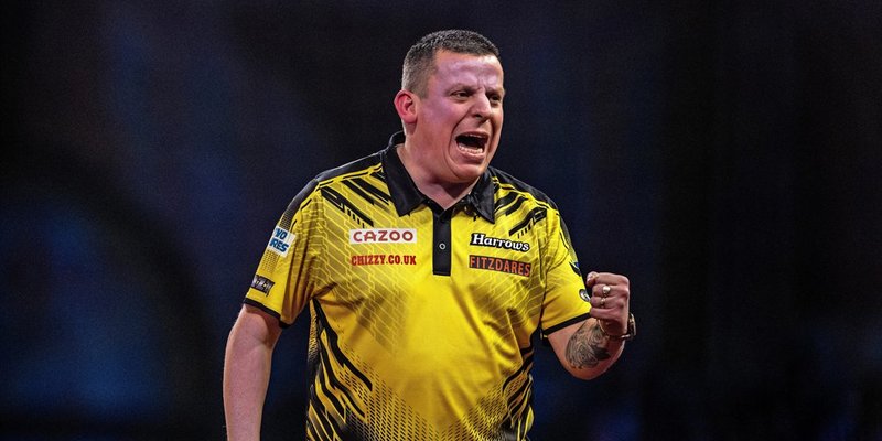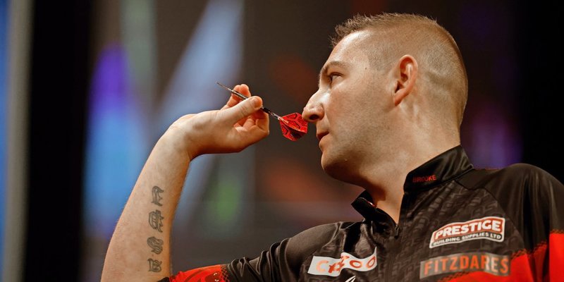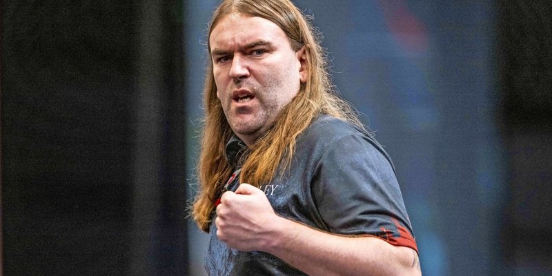 Michael Smith, genannt „Bully Boy“, fand zum Dartspielen, als er eine gebrochene Hüfte auskurierte. Er probierte sich aus Langeweile an den Dartpfeilen aus und blieb ihnen bis heute treu. Seinen letzten Sieg in Hildesheim errang der Engländer im Juni während des 13. Pro Tour Turniers. Foto: Jürgen Kessler/dpa