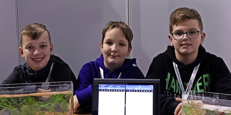 Tom Pieper, Hannes Fuchs und Nick Theurer vom Gymnasium Himmelsthür bauten die Meere nach – in „Minaturform“, wie Fuchs sagt. Dafür stellten sie zwei Aquarien auf, in die sie jeweils fünf Wasserschnecken legten. In eines der Aquarien fügten sie außerdem noch Plastikmüll zu – zerrissene Schokoriegelverpackungen, wie sie in den Meeren überall zu finden sind, sagt Pieper. Nach wochenlanger Beobachtung fiel den drei Schülern auf, dass die Wasserschnecken im plastikfreien Wasser besser wuchsen – die anderen dagegen versuchten regelmäßig, an den Glaswänden ihres Aquariums hinauszuklettern.