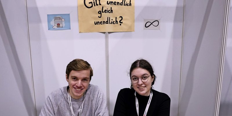 „Gilt unendlich gleich unendlich?“ Diese Frage stellten sich Talea Neddermeyer und Daniel Kokkelink von der Robert-Bosch-Gesamtschule. Denn: „Wir sind davon ziemlich fasziniert“, sagt Neddermeyer. Sie nennt das Gedankenexperiment des unendlichen Hotels, auch als Hilberts Hotel bekannt, als Anstoß für ihre Überlegungen. Das Prinzip besagt, dass ein Hotel mit unendlich vielen Räumen und unendlich vielen Gästen trotzdem noch Platz für einen weiteren Gast hat, wenn alle nur um eine Tür weiter rücken. „Ein sehr theoretisches Thema“, sagt Neddermeyer – und ein sehr paradoxes.