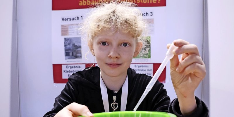 Charlotte Buchhester vom Andreanum ist nicht zum ersten Mal mit ihren Forschungen in der Halle 39, schon im vergangenen Jahr räumte sie mit ihren Holzwürmern mehrere Preise ab. Diesmal hat sie sich biologisch abbaubare Kunststoffe genauer angeschaut, sagt sie – und diese nach einer Anleitung im Internet selbst hergestellt. Zum einen hat sie getestet, ob Milchsäurefolie gut Wasser aufsaugt, damit man es zum Beispiel im Katzenklo auslegen kann. Und zum anderen hat sie ausprobiert, ob Glyzerinfolie auch dann an einer Fensterscheibe hängen bleibt, wenn viel Licht darauf strahlt. Das Ergebnis von beiden Tests, sagt die Schülerin, fiel positiv aus.