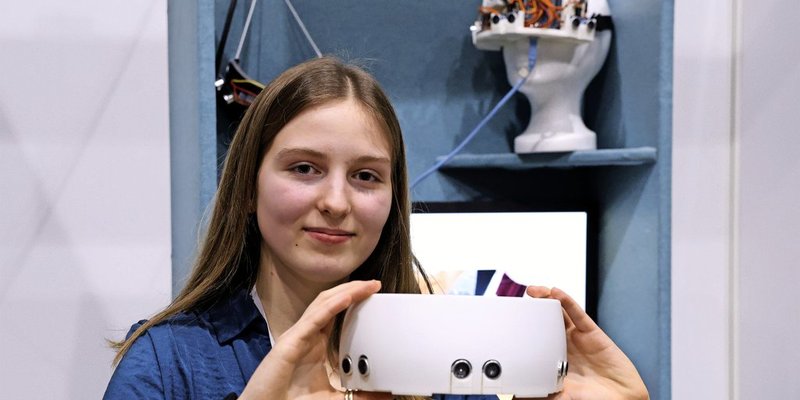 Maya Rapp vom Gymnasium Alfeld möchte Menschen mit einer Sehbehinderung helfen, indem sie ihnen eine Brille aufsetzt. Dabei handelt es sich aber nicht um irgendeine Brille – in ihr sind an drei Stellen Ultraschallsensoren installiert. Diese bringen die Brille zum Vibrieren, wenn man auf ein Hindernis zusteuert. Man bewegt sich dadurch so ähnlich fort, wie es Fledermäuse und Delphine machen, sagt Rapp. Das Fazit einer Testerin, die sich von der Brille um eine Ecke leiten ließ: „Ziemlich cool!“