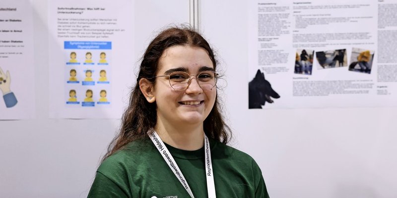 Lina Marie Grönewald vom Goethegymnasium möchte Menschen helfen, die unter einer Unterzuckerung leiden – und wollte dafür ausprobieren, um der feine Spürsinn von Hunden nicht ebenfalls eine Hilfe sein könnte. Sie hat darum drei Hunde zu drei Gruppen von Menschen geführt. Stets eine Person zeigte dabei Anzeichen einer Unterzuckerung, erklärt sie – zum Beispiel Schweißausbrüche. Und tatsächlich erkannten die Hunde stets die richtige Person, sagt Grönewald. Das größte Problem dabei war „die Hunde voneinander zu trennen“, fügt sie an, „damit sie nicht die ganze Zeit miteinander spielen.“