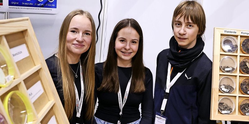 Carlo Jakobi, Amanda Martino und Lara Schillert vom Gymnasium Alfeld wollten prüfen, ob Bio-Plastik sich wirklich so leicht zersetzt, wie dessen Hersteller versprechen. Das Ergebnis: „Das ist fast nie der Fall“, sagt Jakobi. Die drei haben dafür Plastikstückchen wie Softair-Kugeln oder Einkaufstüten in unterschiedliche Bodenproben gelegt und kompostiert. Gerade die Softair-Kugeln blieben aber unverändert. „Ein erschreckendes Ergebnis“, sagt Jakobi.
