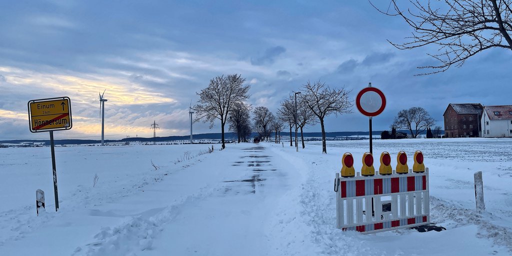 Betroffen sind derzeit die Straßen zwischen Einum und Achtum sowie Einum und Hönnersum. Diese Straßen sind wegen anhaltender Schneeverwehungen voll gesperrt. Verkehrsteilnehmende werden gebeten, entsprechende Umleitungen zu fahren.