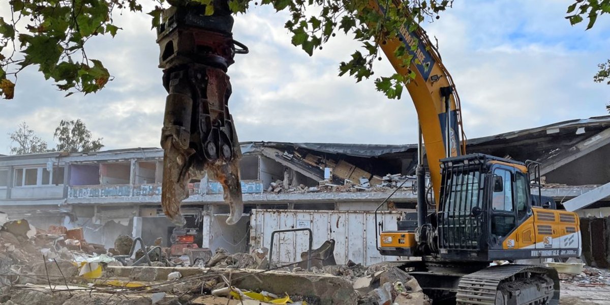 Drispenstedt - Aus der Entfernung sieht es so aus, als würden Spielzeugwände brechen. Als brächte Walter Bender mit seinem Arbeitsgerät ein Puppenhäuschen zum Einsturz. Dabei fallen mit jedem Schnappen seiner vorn am Bagger angebrachten Schere tonnenschwere Betonteile zu Boden. Der Sarstedter ist Mitarbeiter des Lehrter Abrissunternehmens A&S Betondemontage, das zur Detmering Unternehmensgruppe gehört. Die gbg Wohnungsbaugesellschaft Hildesheim AG hat die Firma damit beauftragt, die alte Drispenstedter Ladenzeile dem Erdboden gleichzumachen und den Schutt anschließend zu recyceln. Bis November sollen alle sichtbaren Bauteile weg sein. „Anschließend geht es in die Erde“, sagt Frank Stoll, Bauleiter des Abrissunternehmens.