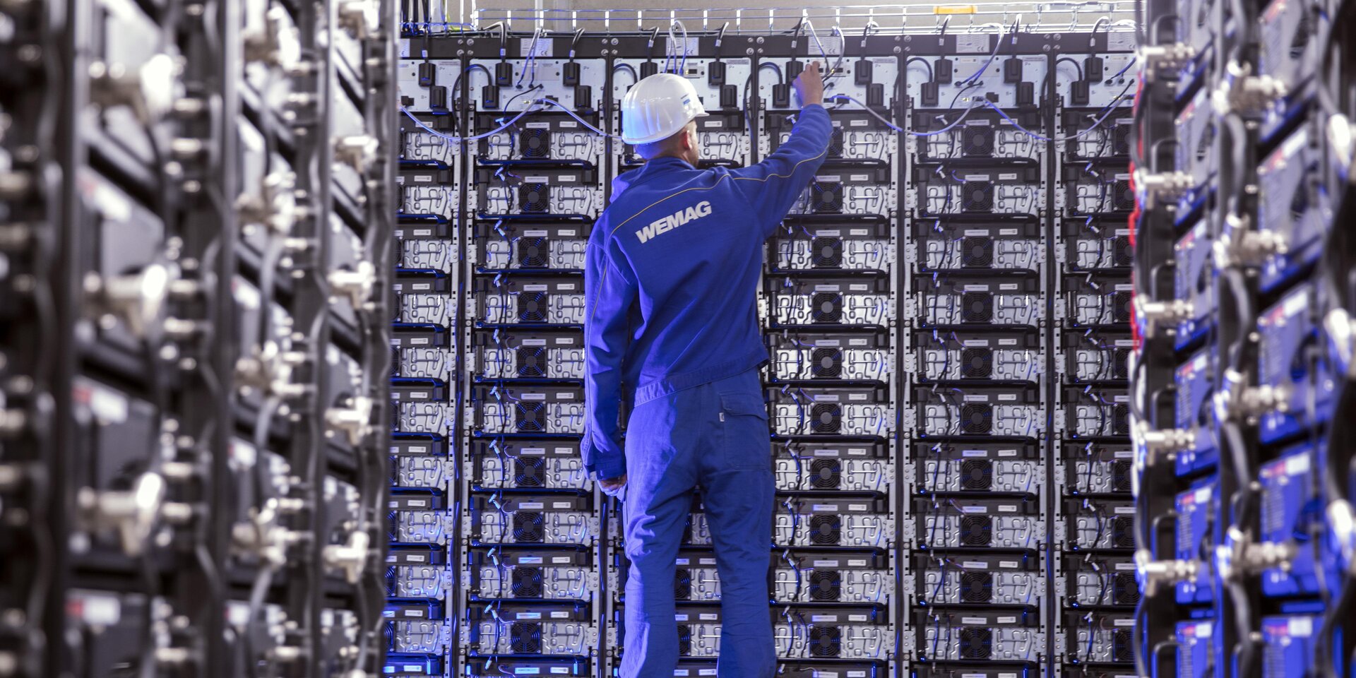 Blick ins Innere eines fertigen Batteriespeichers (in Schwerin): Bei Lamspringe sollen drei große Anlagen entstehen, und in Alfeld rückt die Inbetriebnahme näher. Foto: Jens Büttner/dpa