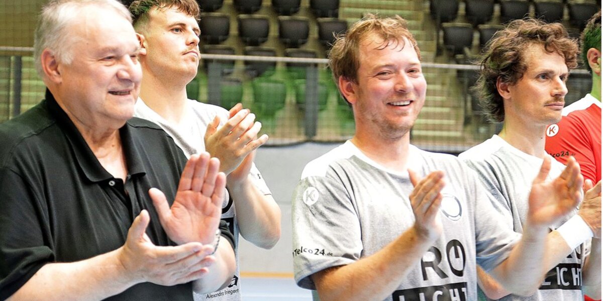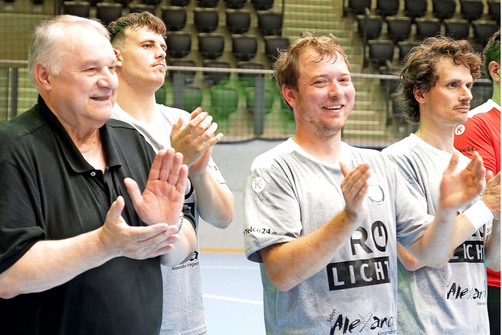 Zwischendurch spielte eine andere Zahl eine besondere Rolle. Auch in der 25. Minute war die Partie unterbrochen worden – und zwar für den Fanklub „Hölle 39“, der in diesem Jahr sein 25-jähriges Bestehen feiert. Vor der Halle war aus diesem Anlass vor dem Abschiedsspiel ein kleines Sommerfest gefeiert worden – und in der Halle feierten sich der Fanklub und die Spieler gegenseitig. „Dass er nun nicht mehr für uns auflaufen wird, können wir uns noch gar nicht richtig vorstellen“, meinten einige Hölle 39-Fans.