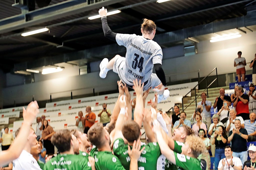 Hildesheim - Die Zahl „34“ war am Samstag allgegenwärtig in der Sparkassen-Arena. Es ist die Rückennummer von Lothar von Hermanni, der ein Stück Hildesheimer Handballgeschichte mitgeschrieben hat. 20 Jahre spielte er mit einer kurzen Unterbrechung für Eintracht, nun sagte er „Adieu!“