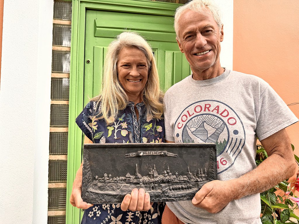 Auch ihrem Partner Alain gefiel das Stück, das etwa 20 mal 40 Zentimeter groß ist, zwei Zentimeter breit und mehrere Kilo wiegt. Er finde das Relief schön, sagt der 67-jährige ehemalige Weinbauer. Doch auf den Namen der Stadt, die dort zu sehen ist, habe er nie geachtet. „Hildesheim – das sagte mir gar nichts.“