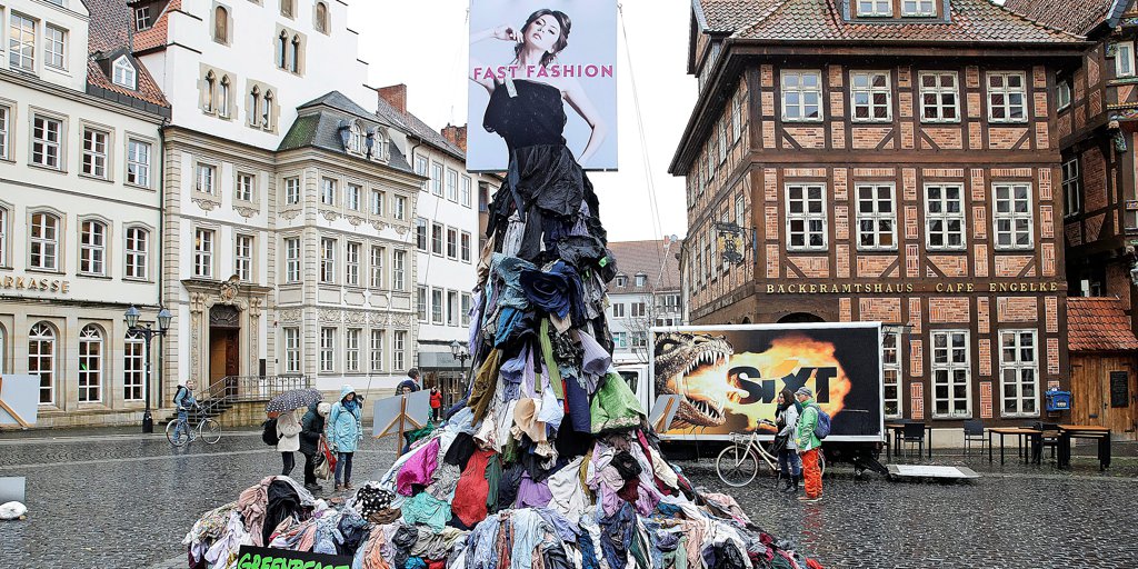 Hildesheim - Billigmode wird unter unwürdigen Bedingungen produziert, günstig verkauft, kaum getragen und weggeschmissen, bevor sie als Müll wieder in armen Ländern landet. Dagegen protestiert Greenpeace Hildesheim mit einer weithin sichtbaren Aktion. (mit Video)