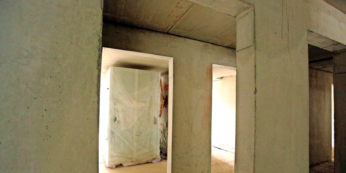 118 Appartements aus Wandelementen mit völlig glatten Oberflächen. „Wir gehen mit Spritzputz drüber, man kann sie aber auch so einfach streichen.“ Die Bäder werden komplett als fertiger Bausatz geliefert, per Kran in die Appartements reingehoben und quasi nur noch angestöpselt. Alle Leitungen liegen bereit und die Anschlüsse auch.