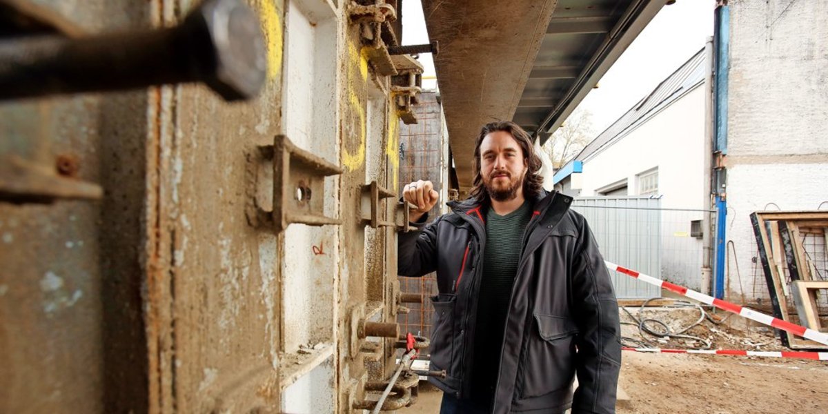 Doch heute ist der Tag von Schipke und seinem Team. Denn es geht um eine aus seiner Sicht innovative und zukunftsweisende Bautechnik, mit der man gleich mehrere Probleme lösen kann: preiswert, schnell und wetterunabhängig bauen, mit Beton klimaneutral große Mengen an Wohnraum erstellen und sich vom Fachkräftemangel abkoppeln. Denn auf der Baustelle am Bischofskamp sind nur neun Leute im Einsatz, zwei davon als Springer.