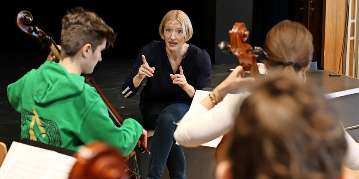 „Am Anfang war ich ein bisschen starstruck. Aber am Ende ist es – in Anführungszeichen – nur das Dirigat“, sagt die 17-jährige Cellistin Antonia Blaich nach der 60-minütigen Probe. Dana Dietrich, Flötistin, ist nicht ganz so cool: „Oh mein Gott, ich bin so super-sprachlos. Es ist eine große Ehre neben ihr zu stehen!“