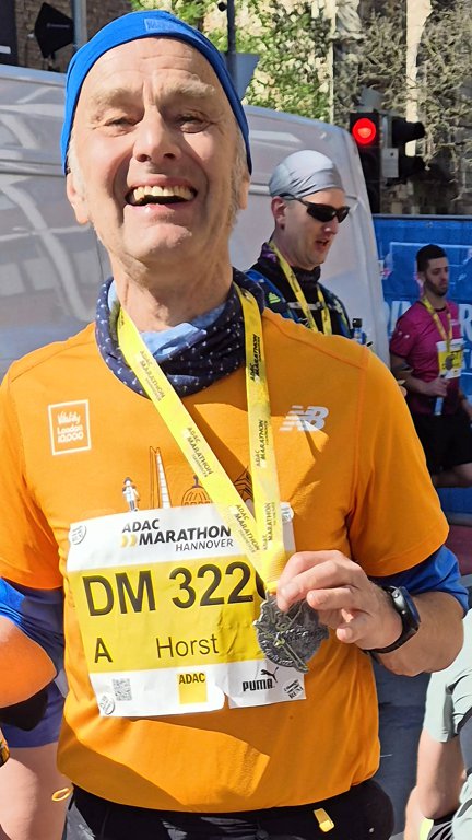 Vor einigen Wochen absolvierte er seinen ersten Marathon nach der OP. In Hannover ging es um die Deutsche Meisterschaft. Stoldt startete für den VfV Hildesheim. Er ließ es langsam angehen. „Eine Vorsichtsmaßnahme wegen der Knie-OP.“ Doch es lief gut und er kam immer besser in Schwung. Er arbeitete sich von Rang sechs auf Position zwei vor – und die hielt er bis ins Ziel. Nun ist Horst Stoldt deutscher Vizemeister der Altersklasse 80. Mit seiner für einen 81-Jährigen beeindruckenden Zeit von 4 Stunden und 46 Minuten unterbot er sogar die Norm für den berühmten Boston-Marathon (4:50).